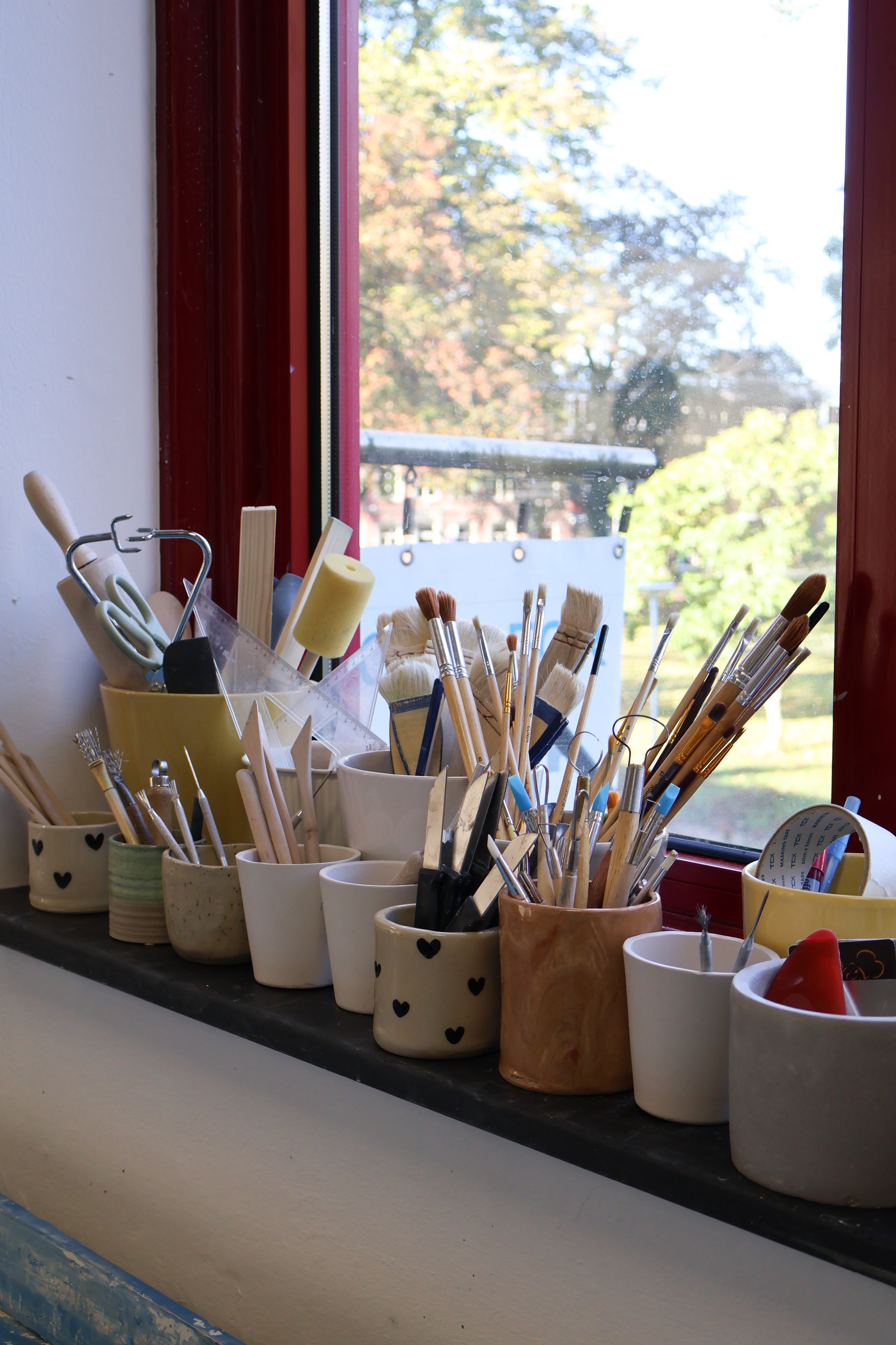 - Een eigen opslagruimte voor je klei, glazuren, engobes, tools.